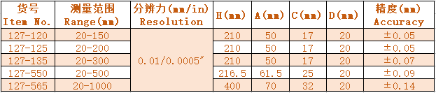 1.任意位置清零和公英制轉換 Zero setting and mm/inch conversion at any position. 2.帶數據輸出口 With data output interface. 3.主要特點同161系列孔距游標卡尺,但是液晶顯示屏,讀數方便 Design features identical to 161 series,but LCD display for easy reading.