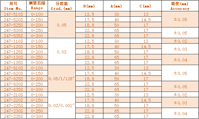 1.量面鑲裝硬質(zhì)合金,更具耐磨性 With carbide measuring faces,more wearable. 2.200mm以上規(guī)格可帶微動滾輪 With thumb roller for range 200mm or more. 3.可進(jìn)行外尺寸、內(nèi)尺寸、深度尺寸及臺階尺寸測量 Can measure OD,ID,depth and step.